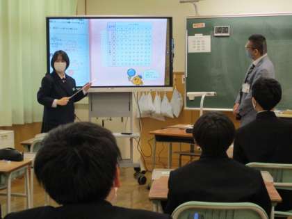 4月14日(木) 1年生の数学の授業の様子です。 「九九の表を見て気づくこと」を発表していました。