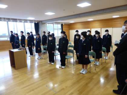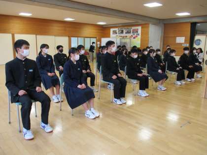 4限 創校記念式 公開日 2022/04/15 更新日 2022/04/15 日々の活動から 4月15日(金) 4限に多目的室で創校記念式を行いました。 校長先生がこれまでの学校の変遷について話をしました。 楡原中学校は今日で76歳になりました。 最後は校歌を歌いました。
