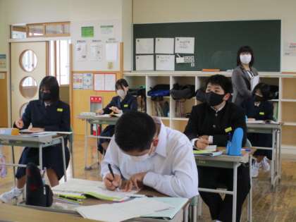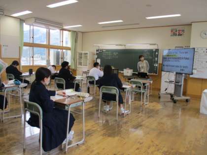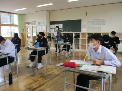 2年2限 英語 公開日 2022/04/18 更新日 2022/04/18 日々の活動から 4月18日(月) 2年生の英語の授業の様子です。 「picture of」と 「picture from」のちがいについて学習していました。