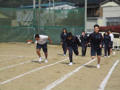 4月19日(火) 2年生の保健体育の授業の様子です。 50m走のタイムを測定していました。