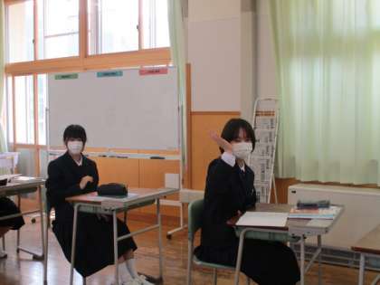スクールサポーターの先生がお手伝いに来ていました。 前に出て堂々と発表する生徒もいました。