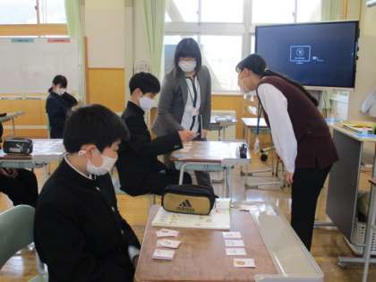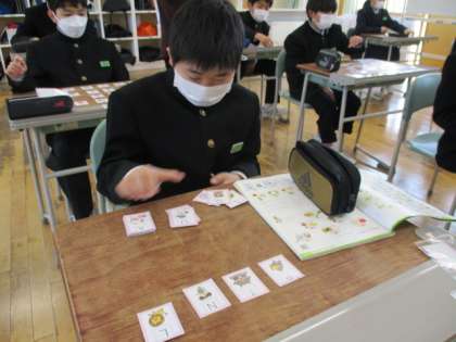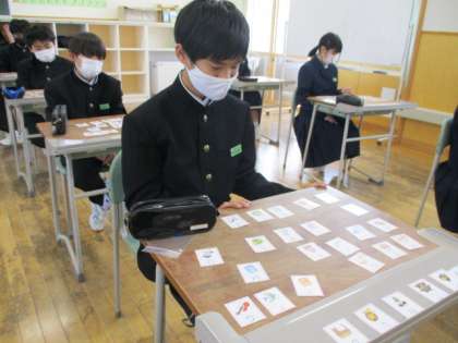 1年1限 英語 公開日 2022/04/20 更新日 2022/04/20 日々の活動から 4月20日(水) 1年生の英語の授業の様子です。 「アルファベットの音と文字の復習」という内容の授業でした。 アルファベットのカードをシャッフルしてアルファベット順に並べていました。 意外と難しかったようです。