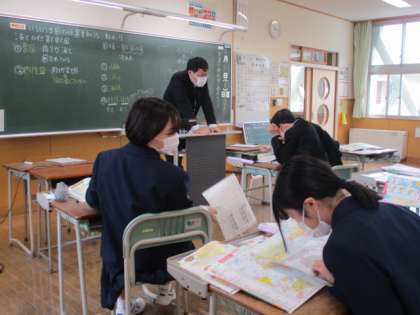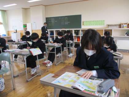 4月21日(木) 1年生の社会の授業の様子です。 「いろいろな国の位置を知ろう」という内容の授業でした。