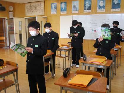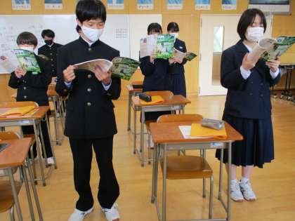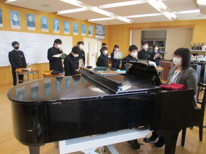 1年3限 音楽 公開日 2022/04/22 更新日 2022/04/22 日々の活動から 4月22日(金) 1年生の音楽の授業の様子です。 「はるかな道へ」という曲を「美しい声で歌う」という目標で歌っていました。