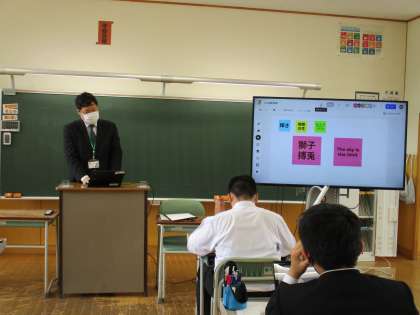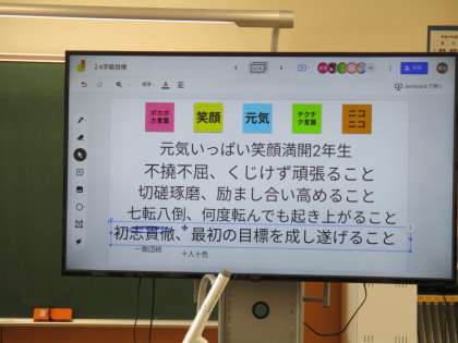 タブレットを使って学級目標の案を出していました。