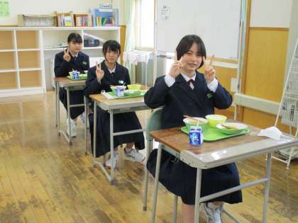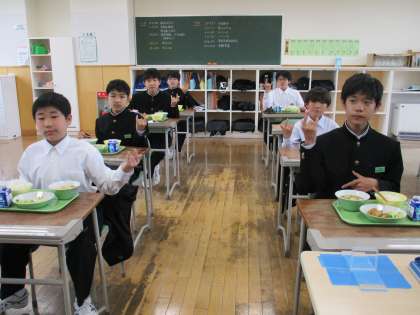 4月22日(金) 1年生の給食風景です。 放送当番の生徒もいました。