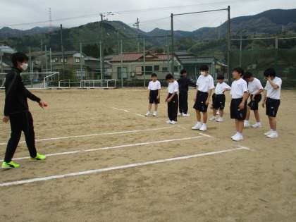 4月22日(金) 1年生の保健体育の授業の様子です。 50m走のタイムを測定していました。