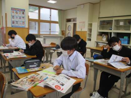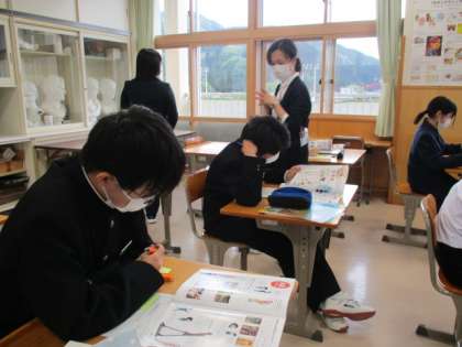 4月26日(火) 1年生の美術の授業の様子です。 初めての美術でした。担当は神通碧小学校の山下先生です。