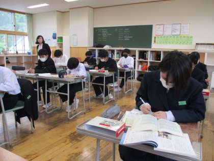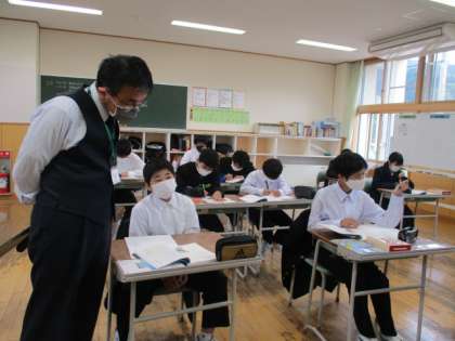 1年3限 国語 公開日 2022/04/26 更新日 2022/04/26 日々の活動から 4月26日(火) 1年生の国語の授業の様子です。 「シンシュン」という文章を読んで「心情や行動を表す語句に注意して読む」「登場人物の関係の変化をとらえる」という内容の授業でした。