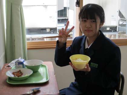 4月26日(火) 1年生の給食風景です。 放送当番の生徒もいました。