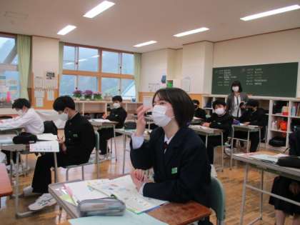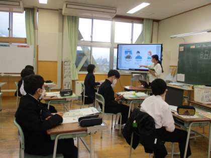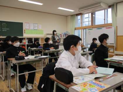 4月27日(水) 1年生の英語の授業の様子です。 アルファベットの正しい書き方について学んでいました。