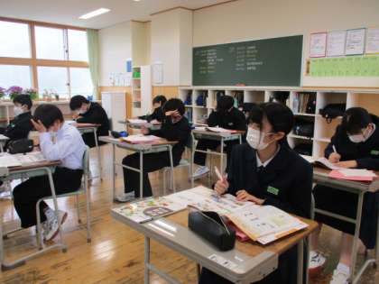 4月27日(水) 1年生の家庭科の授業の様子です。 食事をする意味について学んでいました。
