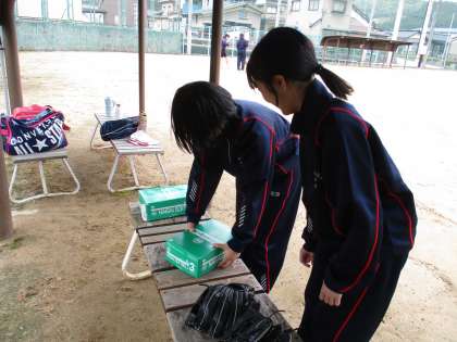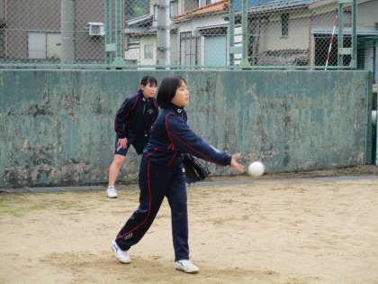 キャッチボールやトスバッティング等の基礎練習を行いました。練習後は、2・3年生が1年生に片付けの仕方を教えていました。