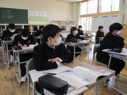 1年1限 社会 公開日 2022/04/28 更新日 2022/04/28 日々の活動から 4月28日(木) 1年生の社会の授業の様子です。 「地球儀と地図のちがいは何だろう?」という内容の授業でした。