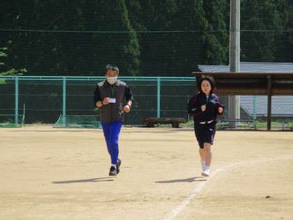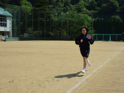 女子が1000mの持久走をしていました。