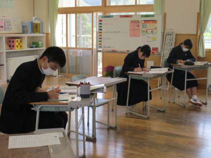 4月28日(木) 3年生の理科の授業の様子です。 「イオンと原子の成り立ち」という内容の授業でした。