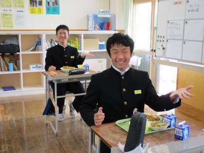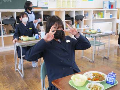 4月28日(木) 2年生の給食風景です。 放送当番の生徒もいました。