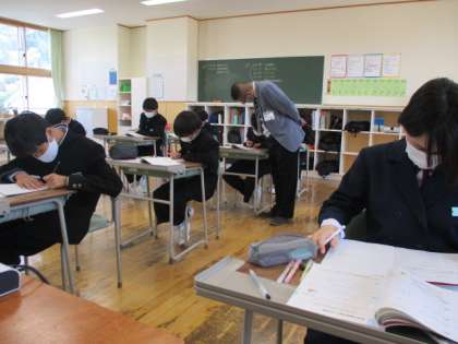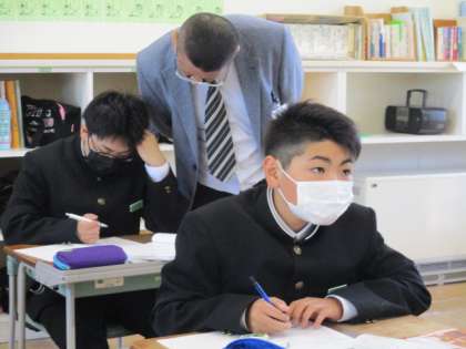 1年1限 数学 公開日 2022/05/02 更新日 2022/05/02 日々の活動から 5月2日(月) 1年生の数学の授業の様子です。 正負の数の減法の復習をしていました。 「ひくほうの符号を変えて加える」を身につけましょう。