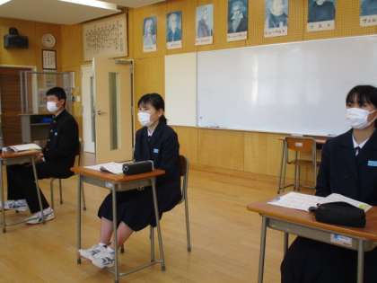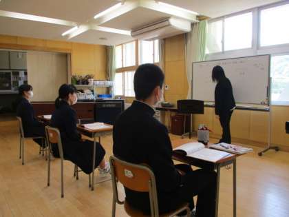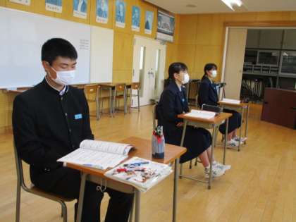 3年1限 音楽 公開日 2022/05/02 更新日 2022/05/02 日々の活動から 5月2日(月) 3年生の音楽の授業の様子です。 『花』を「正しい音程、音楽記号を意識して歌おう」という内容の授業でした。