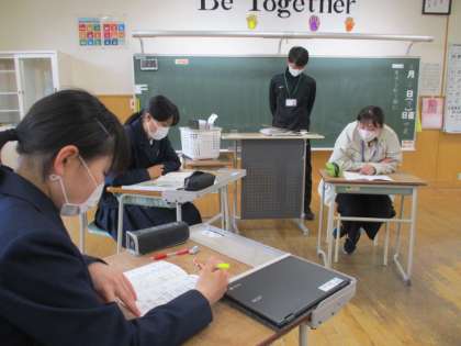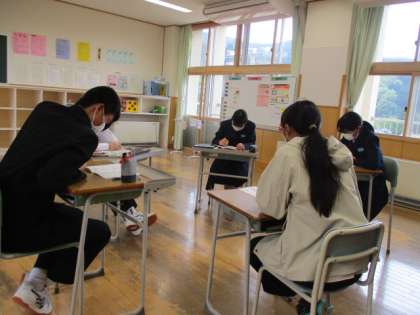 3年6限 学級活動 公開日 2022/05/02 更新日 2022/05/02 日々の活動から 5月2日(月) 3年生の学級活動の様子です。 生徒総会に向けての話し合いと修学旅行のしおりの読み合わせをしていました。