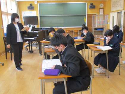 5月6日(金) 1年生の音楽の授業の様子です。 「はるかな道へ」を歌っていました。