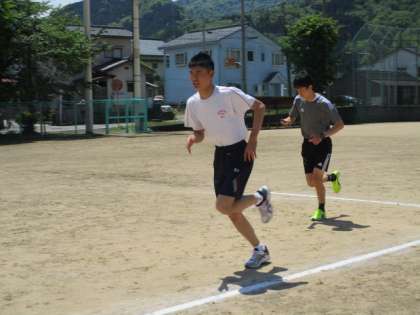 3年4限 保健体育 公開日 2022/05/06 更新日 2022/05/06 日々の活動から 5月6日(金) 3年生の保健体育の授業の様子です。 女子は1000m、男子は1500m走の持久走を行いました。 授業担当者も男子と一緒に走っていました。
