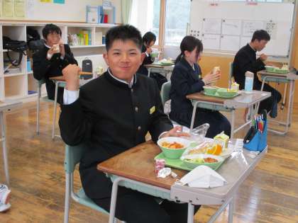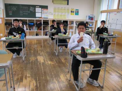 5月9日(月) 2年生の給食風景です。 放送当番の生徒もいました。