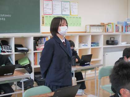 5月9日(月) 1年生の学級活動の様子です。 学級目標を決定した後で、SDGsについても考えました。