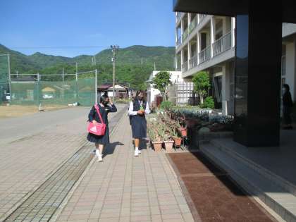 5月10日(火) 気持ちよい朝です。 3年生は、修学旅行へと出発しましたが、1・2年生も元気よく登校しています!