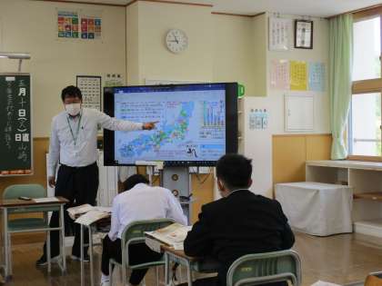 2年1限 社会 公開日 2022/05/10 更新日 2022/05/10 日々の活動から 5月10日(火) 2年生の社会の授業の様子です。 「幕府はどのようにして反乱を起こさせなかった?」という内容の授業でした。