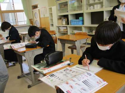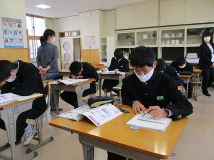 5月10日(火) 1年生の美術の授業の様子です。 <鉛筆で描こう>「明暗を表す」という内容の授業でした。