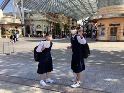 USJでの活動を開始する時の様子です。USJ到着時は疲れて遊ぶ気力もない様子でしたが、いざ入園となると元気を取り戻したようでした。