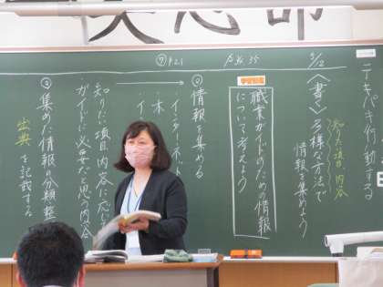 2年1限 国語 公開日 2022/05/12 更新日 2022/05/12 日々の活動から 5月12日(木) 2年生の国語の授業の様子です。 「職業ガイドのための情報について考えよう」という内容の授業でした。