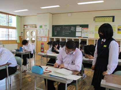2年2限 数学 公開日 2022/05/12 更新日 2022/05/12 日々の活動から 5月12日(木) 2年生の数学の授業の様子です。 1章の復習プリントをしました。 質問が多くて、たくさん疑問を解決できました。