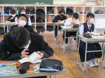 1年4限 国語 公開日 2022/05/12 更新日 2022/05/12 日々の活動から 5月12日(木) 1年生の国語の授業の様子です。 「漢和辞典を使って部首について理解しよう」という内容の授業でした。
