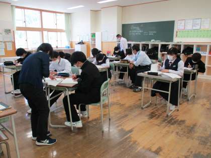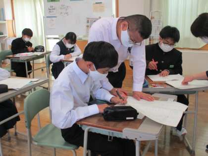 1年3限 数学 公開日 2022/05/12 更新日 2022/05/12 日々の活動から 5月12日(木) 1年生の数学の授業の様子です。 加法と減法の復習をしました。 符号の間違いや、約分ミス、計算の順序まちがいなどがありました。 速く正確に計算できるようになっていきましょう。