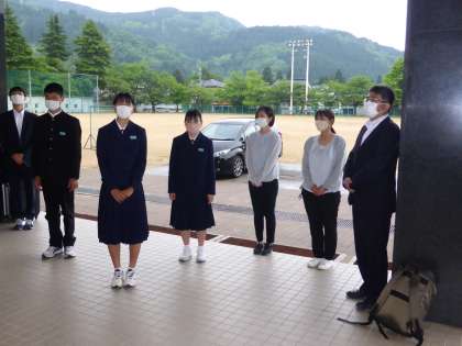 修学旅行 帰着式1 公開日 2022/05/12 更新日 2022/05/12 日々の活動から 5月12日(木) 18時に修学旅行団が学校に帰着しました。 タクシーから降りてくる生徒たちに、職員が「おかえりなさい」の文字で出迎えました。 生徒代表の言葉がありました。
