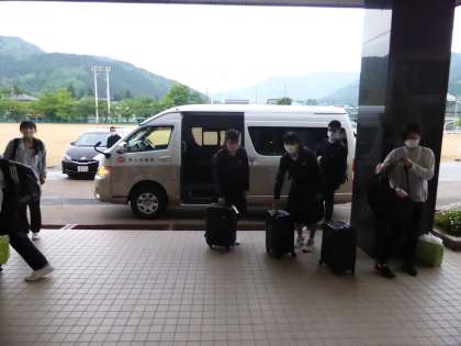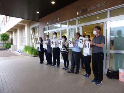 修学旅行 帰着式1 公開日 2022/05/12 更新日 2022/05/12 日々の活動から 5月12日(木) 18時に修学旅行団が学校に帰着しました。 タクシーから降りてくる生徒たちに、職員が「おかえりなさい」の文字で出迎えました。 生徒代表の言葉がありました。