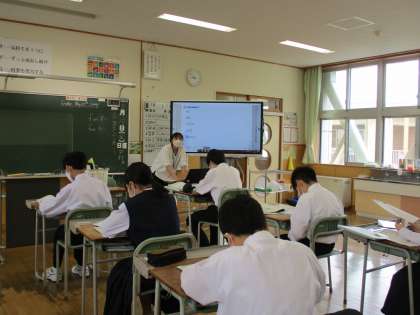 1年1限 英語 公開日 2022/05/13 更新日 2022/05/13 日々の活動から 5月13日(金) 1年生の英語の授業の様子です。 「相手についてたずねたり、答えたりしよう」という内容の授業でした。