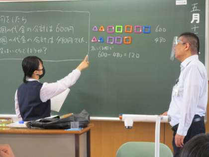 2年1限 数学 公開日 2022/05/13 更新日 2022/05/13 日々の活動から 5月13日(金) 2年生の数学の授業の様子です。 「連立方程式とその解き方」という内容の授業でした。 生徒が前に出て自分の考えを積極的に発表していました。