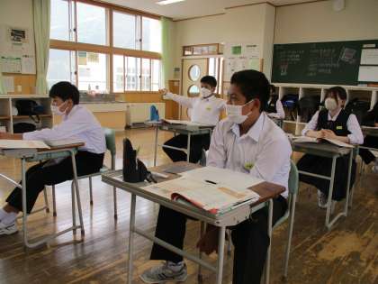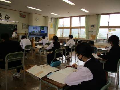 5月13日(金) 2年生の英語の授業の様子です。 新しく学んだ文法で自己表現していました。