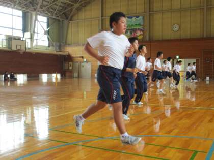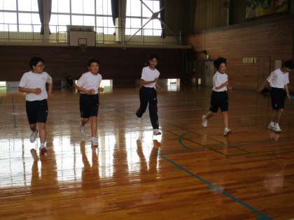 5月13日(金) 1・2年生の保健体育の授業の様子です。 シャトルランをしていました。