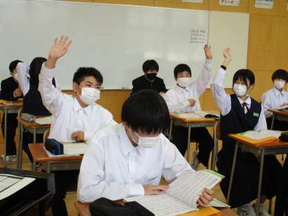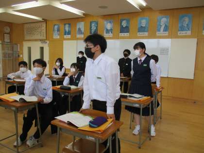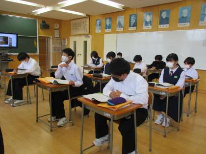 5月13日(金) 1年生の音楽の授業の様子です。 「歌の復習 リズムについて知ろう」という内容の授業でした。