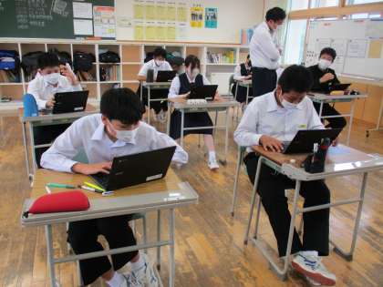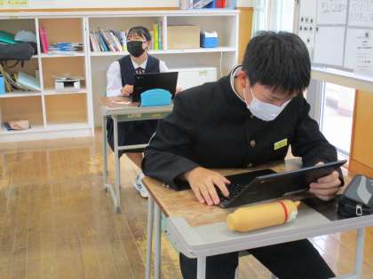 2年6限 楡の木タイム(総合的な学習の時間) 公開日 2022/05/13 更新日 2022/05/13 日々の活動から 5月13日(金) 2年生の楡の木タイムの様子です。 タブレットを用いて、自宅と14歳の挑戦で行く事業所との通勤経路を調べていました。