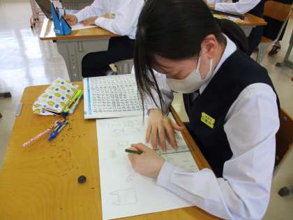2年4限 美術 公開日 2022/05/17 更新日 2022/05/17 日々の活動から 5月17日(火) 2年生の美術の授業の様子です。 環境保護ポスターを作っています。鉛筆での下書きや、色付けを進めていました。