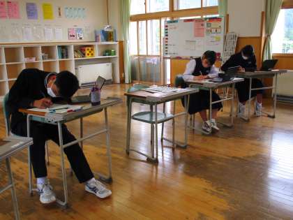 5月17日(火) 3年生の楡の木タイムの様子です。 修学旅行の事後学習として新聞を作っていました。