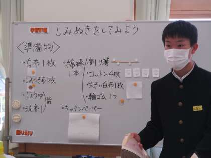 5月18日(水) 1年生の家庭科の授業の様子です。 「しみぬき」という内容の授業でした。