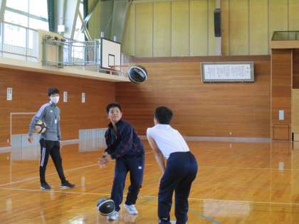 2・3年5限 保健体育 公開日 2022/05/18 更新日 2022/05/18 日々の活動から 5月18日(水) 2・3年生の保健体育の授業の様子です。 「バスケットボールの基本的な技能を高めよう」という内容の授業でした。