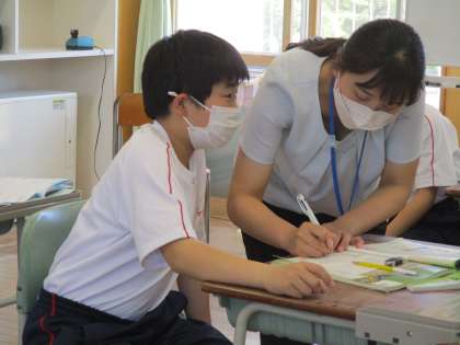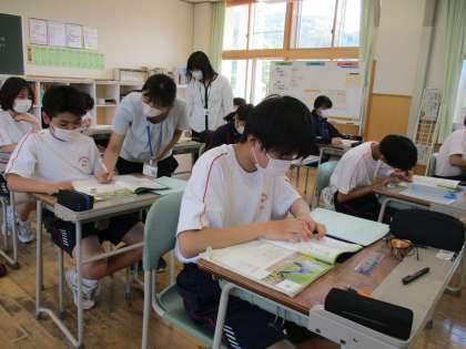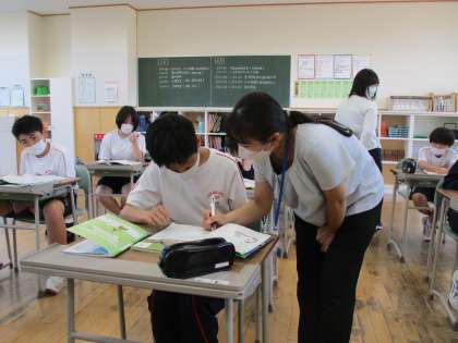 1年6限 英語 公開日 2022/05/18 更新日 2022/05/18 日々の活動から 5月18日(水) 1年生の英語の授業の様子です。 「どこの出身ですか?」とか 「○○できますか?」と英語で会話していました。