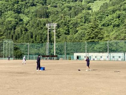 十分な時間があったので、ロングティーの練習をしました。1年生は、入部したての頃よりも前に球を転がせるようになりました。